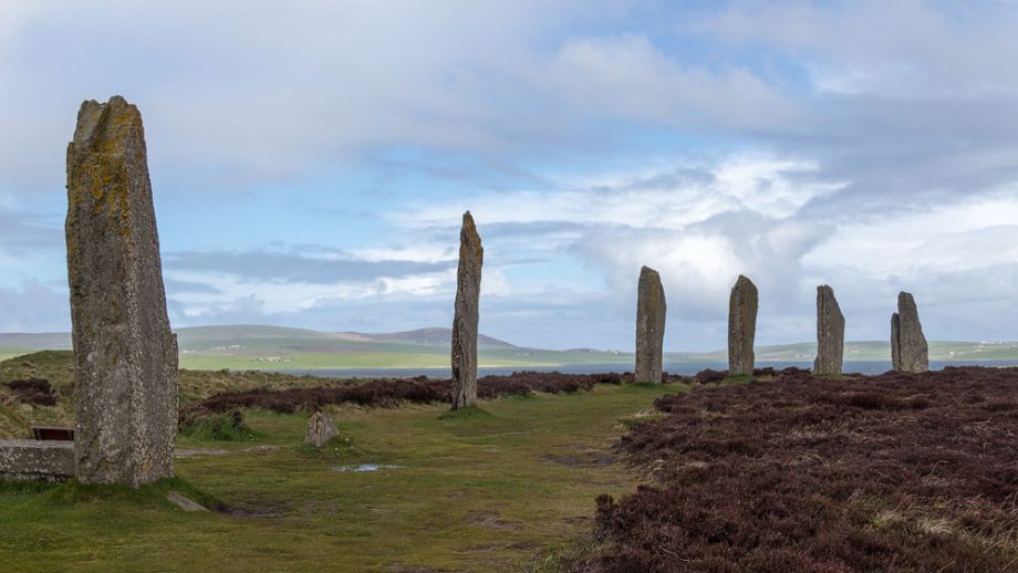 Natürlich hat die Zeit ihre Spuren hinterlassen. Moos wächst an den Flanken der Monolithen, die Oberfläche ist verwittert und einen der Steine hat ein Blitz gespalten. Doch noch immer stehen sie aufrecht und bilden einen gigantischen Kreis. Die Mitte der Anlage ist mit einem Teppich aus Heide ausgelegt – wenn Sie blüht, verleiht sie dem Ring of Brodgar einen elfischen Zauber.