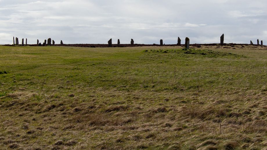 Blickt man sich um, übersieht man weite Teile der Orkney-Insel Mainland mit sanften Hügeln und den glitzernden Loch of Stenness und Loch Harray, die die Landzunge mit dem Steinkreis einrahmen.