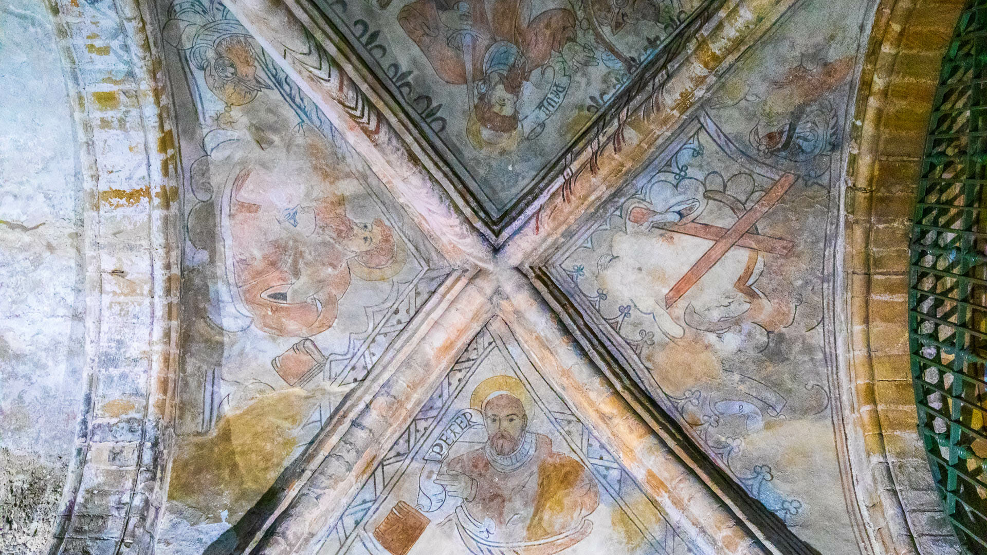 Die verblassten Fresken aus dem 16. Jahrhundert im Deckengewölbe lassen erahnen, wie bunt das alte Kirchenschiff einst erstrahlte.
