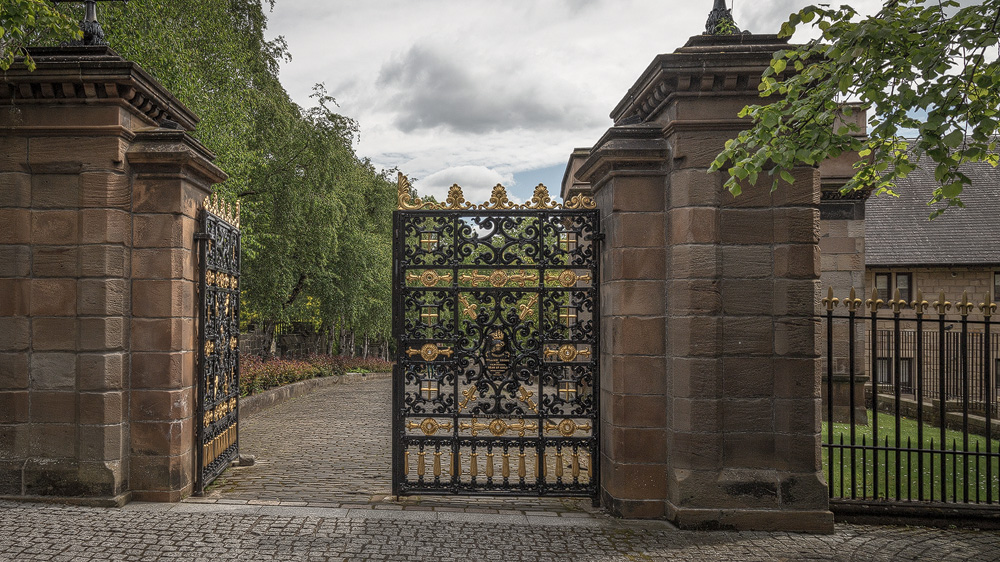 At the top of the path over the bridge, visitors first stand in front of a kind of walled gate. This was originally intended to be an entrance to the catacombs. There was only supposed to be a guarded passageway to the dead to prevent the theft of corpses for anatomical studies – a major problem at the beginning of the 19th century. But in 1832, the British government passed the “Anatomy Act”, which authorised the dissection of donated corpses. This meant that the problem of grave robbers disappeared overnight, and with it the idea of the catacombs. The former entrance was closed. However, the Glasgow Necropolis is not without protection: Park Rangers watch over the peace of the dead and patrol at night.