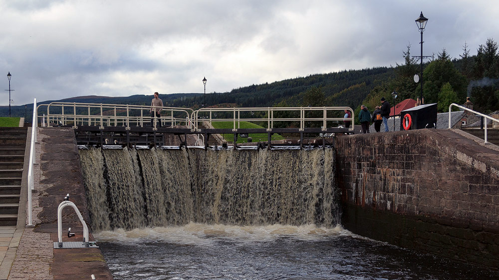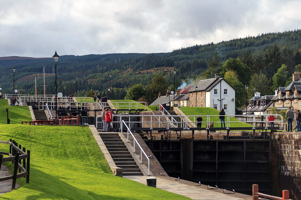 Die alten Schleusen stammen aus dem 19. Jahrhundert und liegen zentral im Ort, das Leben hat sich mehr oder weniger um diese Attraktion gruppiert. Auch die Hauptstraße durch das Great Glen muss den Kanal überqueren und tut dies auf einer Schwingbrücke, die am Ende der Schleusen sitzt.