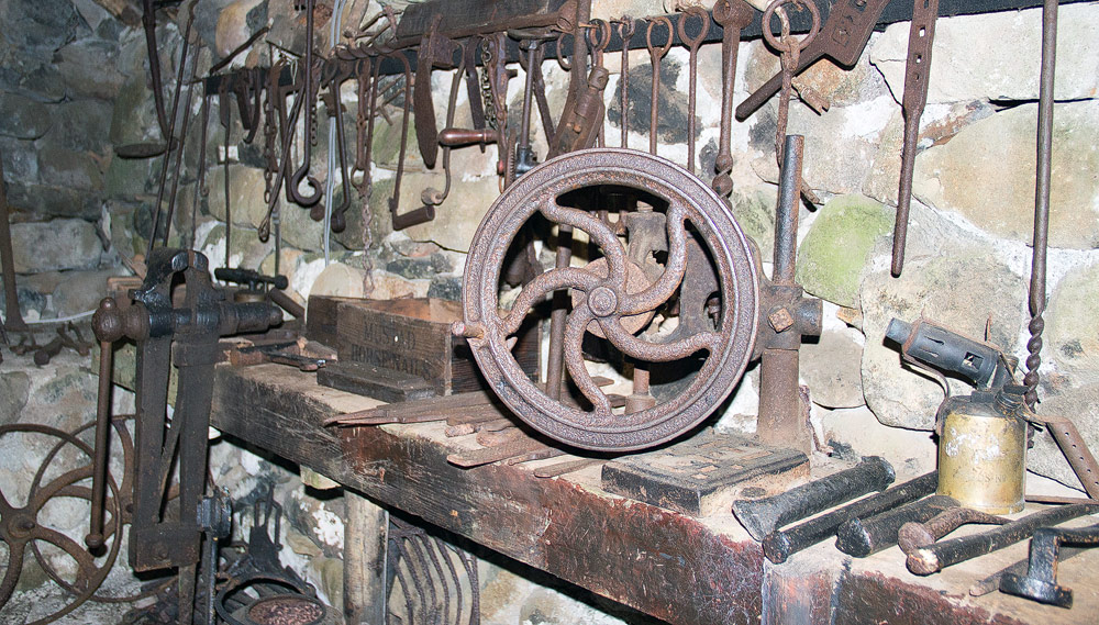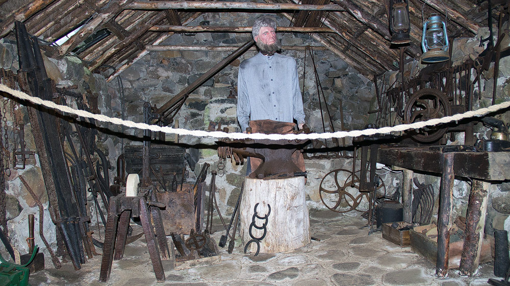 Neben einem Wohnhaus gibt es im Museum of Island Life auch eine Schmiede, eine Weberei und natürlich darf auch ein simpler Stall nicht fehlen. Darin findet sich heute kein Vieh mehr, sondern eine Sammlung an Werkzeugen, die teilweise zweihundert Jahre alt sind (unter anderem ein Kastrationswerkzeug). Zwischen den Blackhouses stehen weitere alte Gerätschaften und Vehikel für die Feldarbeit. Zum Beispiel ein Pflug, vor den ein Pferd gespannt werden konnte.