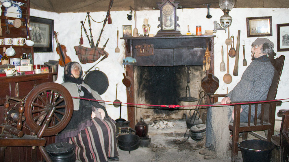 Allerdings sind die Bauten im Museum schon eher modernere Blackhouses. Denn in noch früheren Jahrhunderten teilten sich Mensch die Räume noch mit dem Vieh, und das Torffeuer brannte auch nicht im Kamin – den gab es nämlich nicht. Der Rauch zog einfach durch Löcher im Dach ab. Mehr oder weniger.