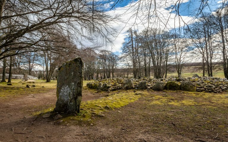 Balnuaran of Clava, eine prähistorische Grabstätte aus dem Bronzezeitalter (auch genannt Clava Cairns) liegt nahe des Culloden Battlefields. Es sind verschiedene Steinhaufen, beispielsweise einer mit einem Eingang in den nur einmal im Jahr die Sonne einfällt (midwinter-sun).