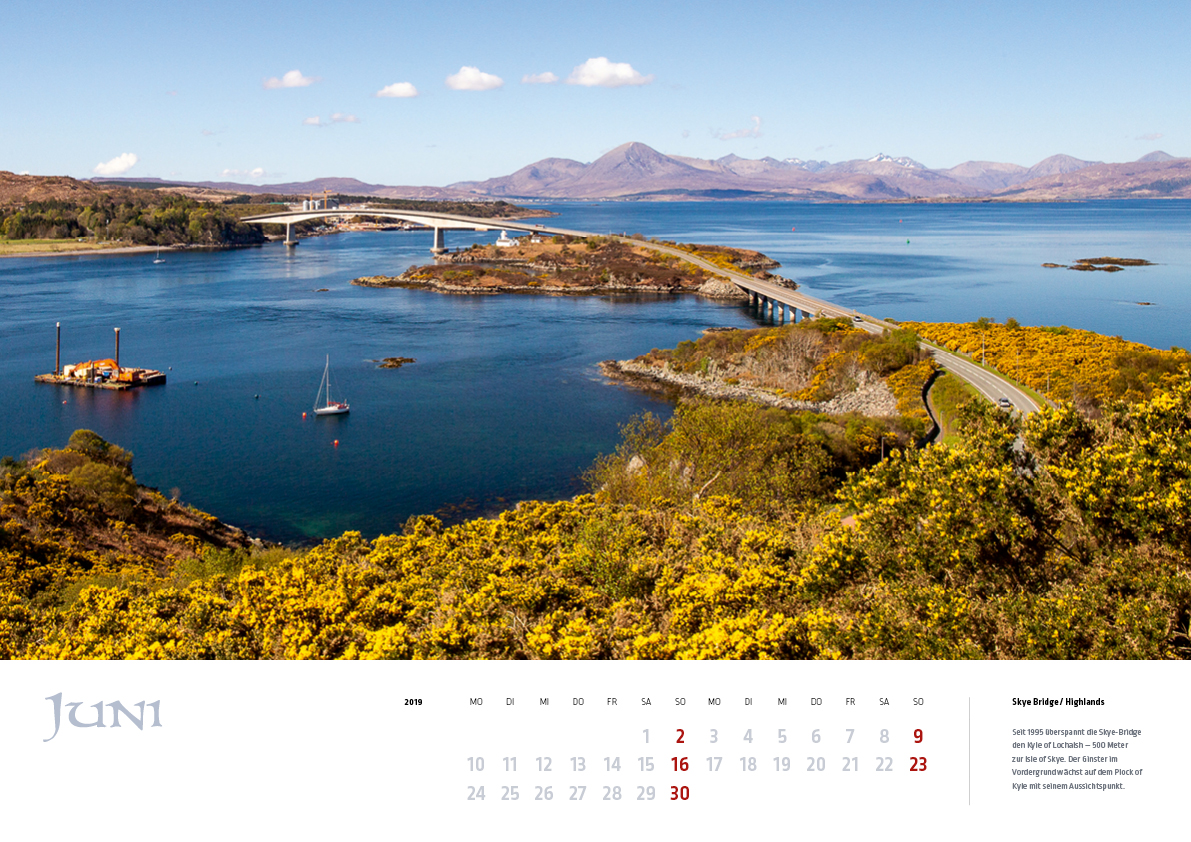 Im Schottland-Kalender 2019 sind folgende Motive enthalten: